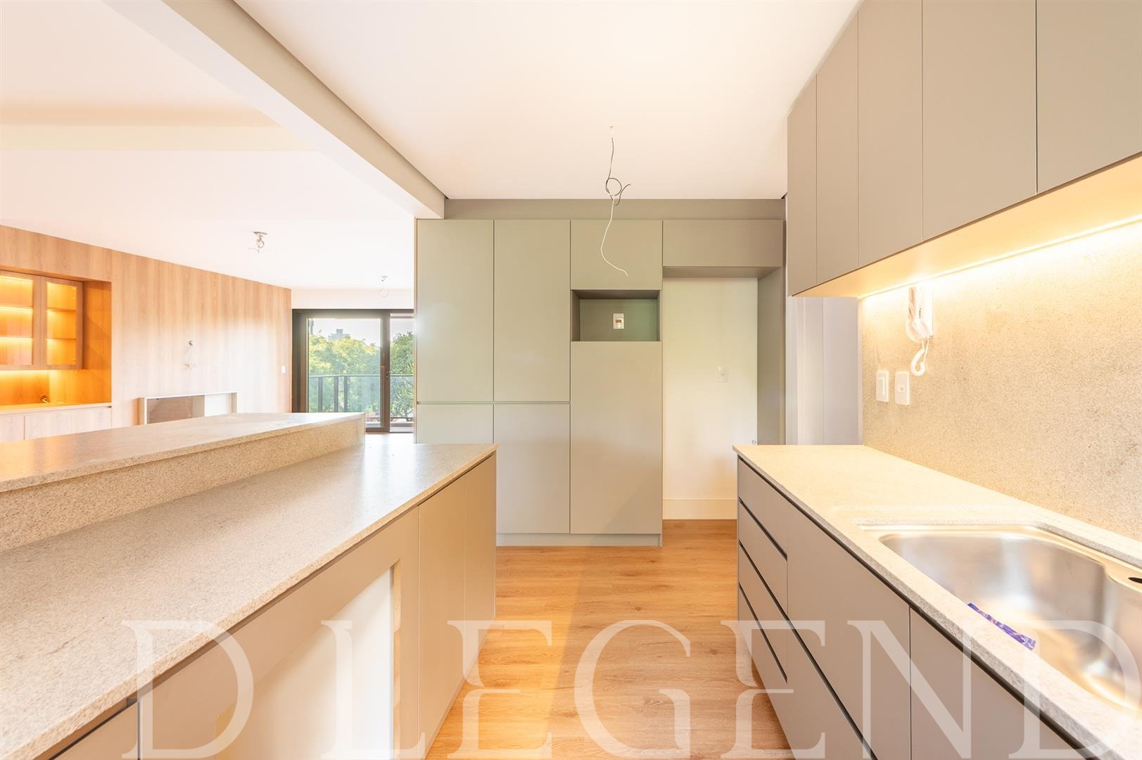 Os apartamentos de 154m2, possuem living de estar e jantar integrado com a churrasqueira, lareira, cozinha, 3 suítes, área de serviço e lavabo.